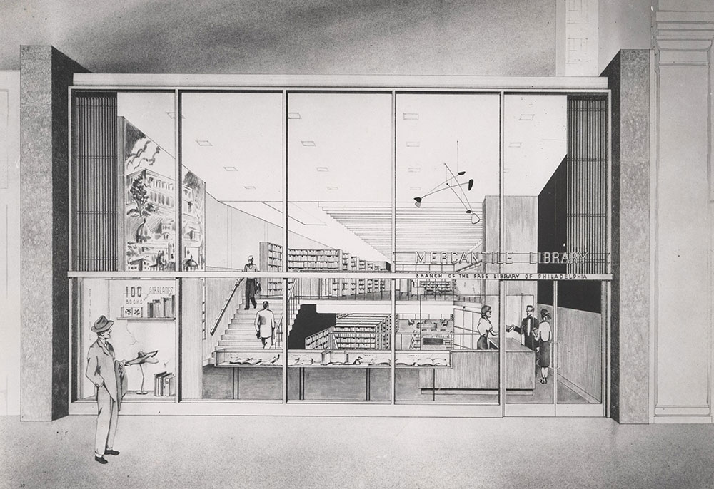 It’s fair to say that most Philadelphians walking along the 1000 block of Chestnut Street are totally unaware of the presence of a Midcentury Modern architectural gem on the north side of the block. In the middle of the 20th century, the Mercantile Library at 1021 Chestnut St. served residents, commuters, and visitors in this pocket of the city, and it was one of the coolest looking buildings around.
