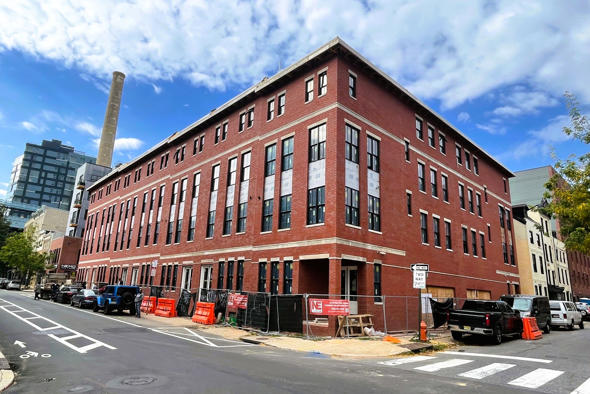 As you have likely guessed by now, this property looks dramatically different today. And that’s because an affiliate of our very own parent company OCF Realty is developing the Philip Street Townhomes, featuring eleven new-construction homes that have continued the residential turn on the block. Those homes, designed by Landmark Architectural Design, are progressing nicely, with their brick and cast stone facades forming a warm and welcoming addition to the northern edge of Old City.
