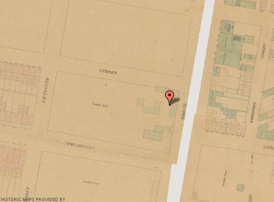In December of 2011, we told you about the exciting new development that was nearly complete at 600 North Broad Street. Today, the complex represents the future promise of North Broad Street. Joe Volpe’s Vie, Marc Vetri’s Alla Spina and Stephen Starr’s Route 6 anchor a reviving area already pioneered by Osteria. This facelift for the property bound by Broad, Green, Mt. Vernon and 15th Streets is a big piece of the puzzle in the transformation of a long-neglected area. This is appropriate because, as history shows, this space has a documented habit of mirroring the broader (no pun intended) changes around it. Indeed, as shown by the image below, taken from Hexamer & Locher’s 1858 Philadelphia Atlas, the 600 block of North Broad was a lumberyard, as was every block between Spring Garden and North Streets.