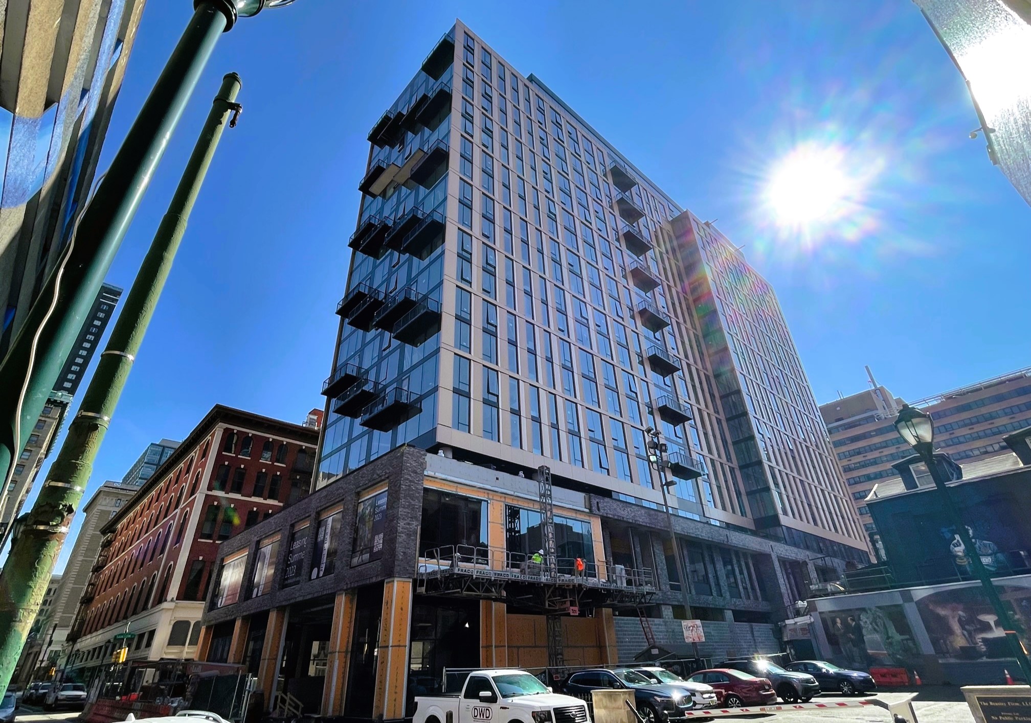 123 S. 12th St., despite its Sesame Street-sounding address, is growing up rapidly after we last stopped over back in August. But me oh my, the scene sure is different here just five months later. Formerly a parking garage, this project (now called Jessup House, thanks to the sliver of
