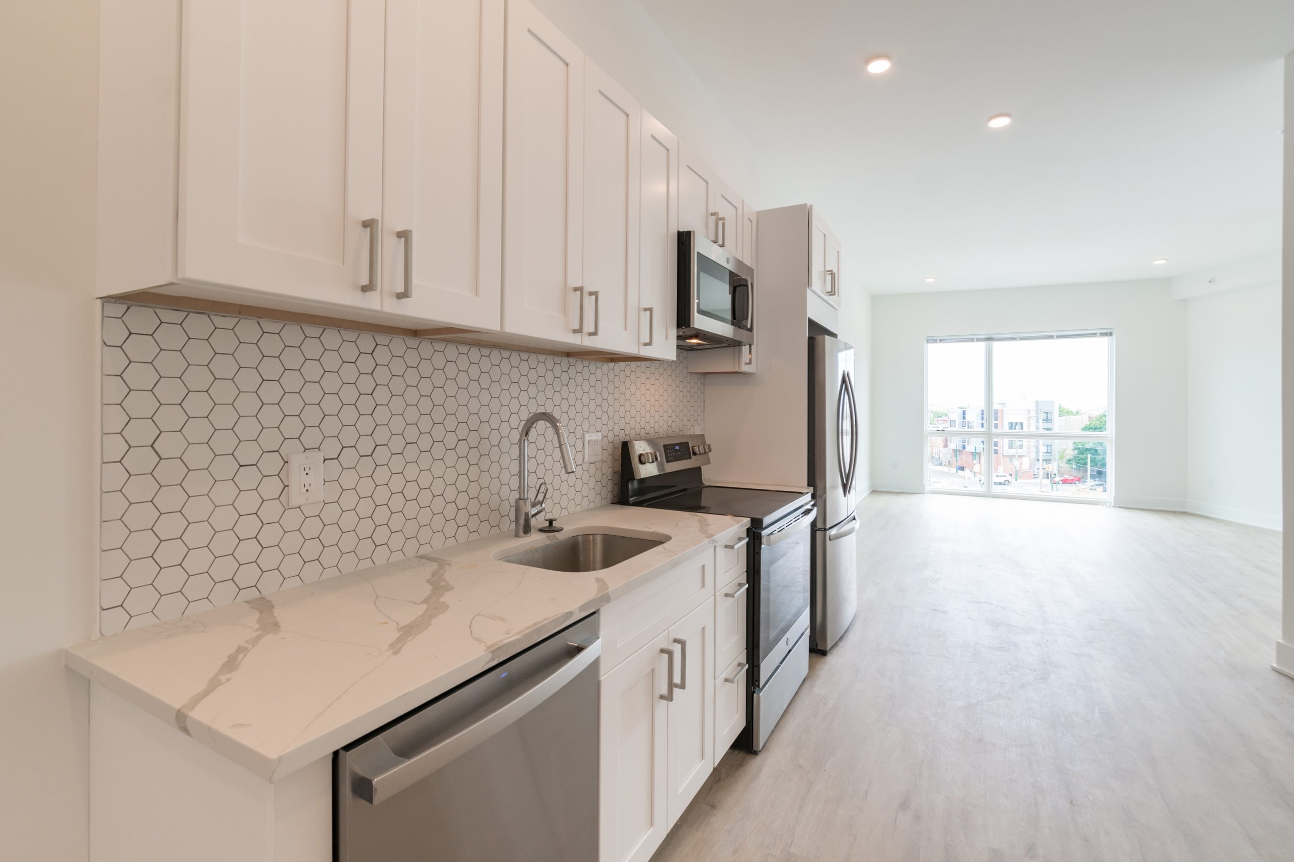 Welcome to 1622 Point Breeze Avenue! Located in the blossoming Point Breeze neighborhood of Philadelphia this beautiful brand new apartment community is the latest addition to the fast growing corridor along Point Breeze Ave and features 57 luxury apartment homes. All units showcase design driven high end finishes, abundant space and access to excellent communal amenities – as well as Central Air/Heat and In-Unit Washers/Dryers. Upon entering any of the apartment homes you are welcomed with an abundance of natural light flowing through large windows in the open-concept kitchen, living space and bedrooms. Kitchens are equipped with plenty of countertop and cabinet space, modern tile backsplashes, stainless steel appliances, and gorgeous hardwood flooring throughout. Generous living areas host large windows and plenty of space for your furniture or home office space. Bedrooms will comfortably fit a queen sized bed and offer plentiful closet space! The stunning bathroom spaces feature designer tile in the tub/shower combos beautifully accenting the finishes throughout this space. Finally, on top of it all, the building also offers a spacious communal roof deck with a sweeping view reaching all the way to the center city skyline! Conveniently located close to everything South Philadelphia has to offer, including the Stadium District, Area Highways, & tons of local hip cafe’s, restaurants, and breweries. Don’t miss your opportunity to be a part of this exceptional apartment community. Schedule a tour with our agents today and discover your new haven in Point Breeze!