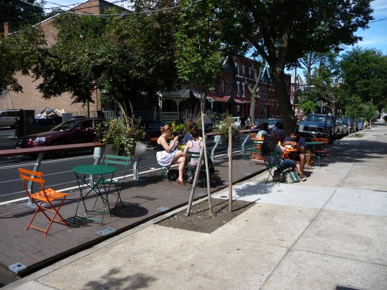 At the end of July, we mentioned a parklet in front of Honest Tom's Taco shop and the Lil Pop Shop that was on the way —well on August 23rd, it made its premiere. And as we mentioned last week when we covered the new Pumpkin parklet on South Street West, we're seeing more