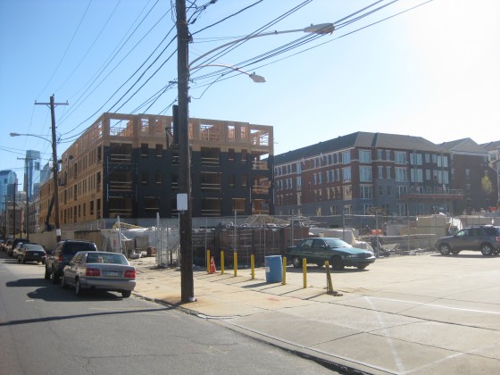 A couple of days ago, we were behind Naval Square on Schuylkill Ave., and captured a shot of the framed out Adison Manor condo building. It's one of the final buildings going up at Naval Square, marking the approaching conclusion of a project that's gone on for nearly a decade.
