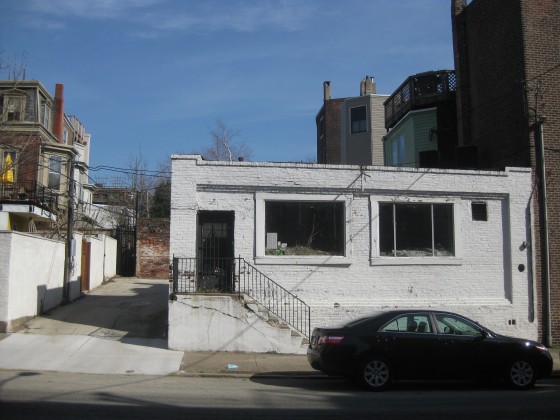 This one story building on 23rd St., just north of Green St., is in terrible disrepair. Peering into the windows, we saw some