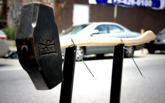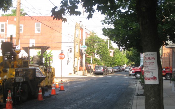 The Streets Department is currently repaving select streets in Graduate Hospital and Point Breeze. We found the "No Parking" sign below on the 2000 block of Catharine St. Stapled. To. A. Tree. Bravo, Streets Department. Bravo.