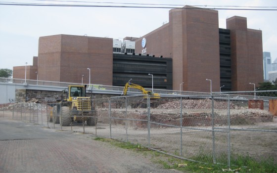 If you've driven or biked over the South Street bridge in the past week or so, you've probably noticed a demolition project going on at the base of the bridge, on Schuylkill Ave. Here are some recent photos, with accompanying shots of what was demolished.