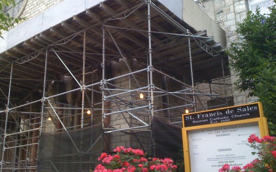 Biking around West Philly, the sight of St. Francis de Sales Church at 47th and Springfield Avenue hits you like a pleasant slap in the face. This church is enormous and unique; built in Byzantine style and loosely based on Istanbul’s incredible St. Sophia Museum. It was built using white brick,