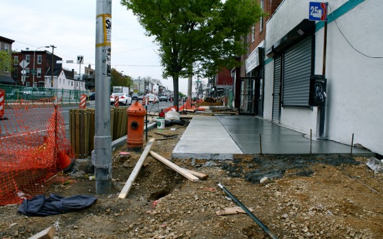 Looks like Chinatown's not the only neighborhood to get some new sidewalks. Walking back from brunch this morning, I noticed a huge construction project rolling out on Fishtown's main thoroughfare, Girard Avenue. According to the construction people I talked with, it looks like the project's going to replace the well-worn