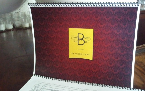 We stopped into Pub & Kitchen this weekend to find the plans for Bedford Cafe, Dan Clark's new (controversial) project we reported about back in March, just sitting out, freshly color-printed and bound at Kinko's. We starting snapping photos with our secret spy cam (Droid, just humor us), knowing the