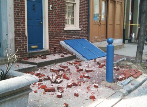 At 11:45am today, Pamela Riley called her husband, shaking in her newly bought boots. "I have barely escaped death," Riley said over the phone. Moments before she had arrived at home, 40 or so 100-year old bricks came tumbling down blocking her entrance to her residence at 156 N. Third