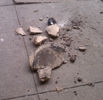 Chunks of concrete are falling off the Septa bridge onto eastern sidewalk of North 22nd Street under JFK Boulevard. We've dodged the impeding doom of the perilous icicles of winter; now comes the spring concrete. Ah the seasons of Philly.