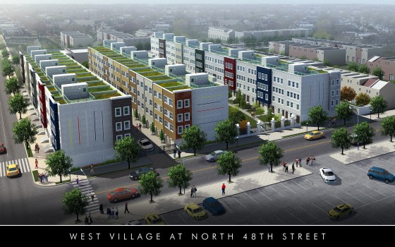 Gardens, green roofs and garages are three things you don't often see in the city (at least not all together, unless you're the guy who owns that killer mansion with the 5-car garage and landscaped front yard at 3rd and Walnut). The new gated community at 48th Street, West Village, is a