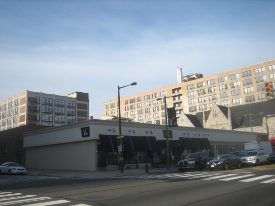 As we mentioned earlier this week when we wrote about the demolition at the former Wilkie Auto Body Shop, the massive project at 600 N. Broad St. is more or less complete. The site, which once held several Wilkie car dealerships, has been transformed by EB Realty Management Corp. and PMC Property Group. These partners have taken a car dealership and the former clothing manufacturing building turned garage behind it into two upscale restaurants, an upscale event space, and ninety seven rental apartments with parking.