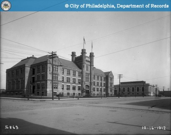 In 1903, architect Lloyd Titus designed a building at 7th & Lehigh for the Northeast Manual Training School, using what the PhillyHistory Blog calls a “Collegiate Gothic Revival” style. The mostly three-story building looked like it arrived preassembled from Europe, with towers and gargoyles and carvings and two stone lions guarding the front door. Little did Titus know that in future decades, his building would be the subject of controversy on several occasions.
