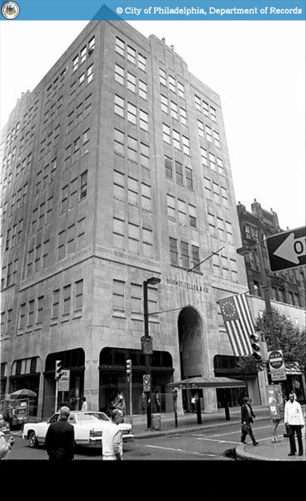 It was within that very same year, according to Philly.com, that New York department store chain Bonwit Teller & Co. moved its Philly location from 13th & Chestnut to 1700 Chestnut. The high-end ladies fashion giant erected the 8-story art-deco building where the old-timey restaurant once stood. It is shown here below, in a photo taken from Philadelphia’s Rittenhouse Square upon its opening in 1928.