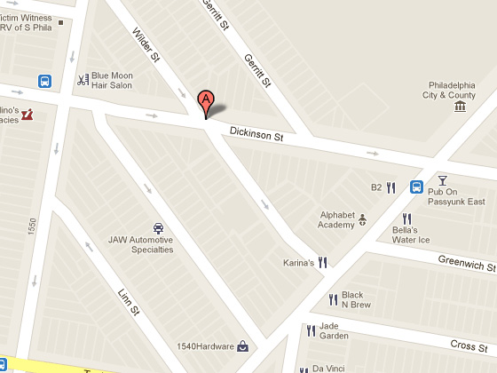 For reasons we don’t really understand, a few streets in the Passyunk Square neighborhood break their east to west path and suddenly turn at an angle and become perpendicular to the diagonal E. Passyunk Ave. While this makes for some stressful driving and confusing walking, it also creates some oddly shaped lots, the likes of which you don’t necessarily see all over town.