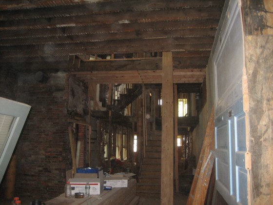 A look through the front door. We can only imagine how much fun it was taking the plaster down from the ceiling.