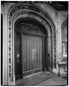 At 2032 Walnut Street the ornamental façade of the Scott-Wanamaker townhouse still showcases some of Chandler’s artistry. Although the original building (built between 1883 and 1886) was demolished in 1981, the front exterior survives in what seems to be an ode to architectural history. Chandler designed the Scott-Wanamaker building in the Jacobean Revival style, which has several distinct characteristics.