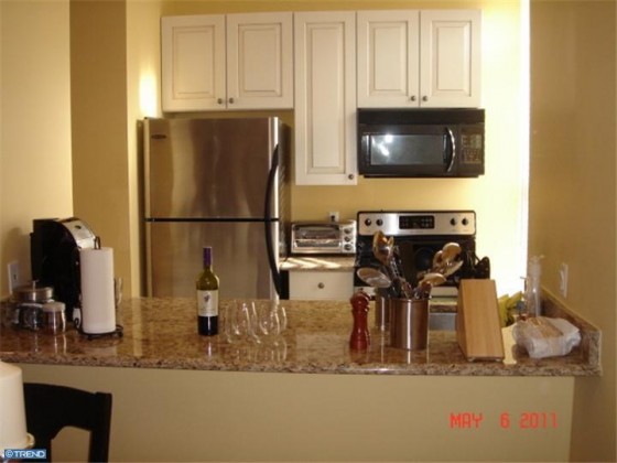 This 2 bedroom, 2 bathroom condo offers nearly 1400 sqft. of living space in the Fairmount neighborhood. Hardwood floors throughout. The kitchen includes stainless steel appliances, granite countertops, custom cabinets, 11′ ceilings, and a breakfast bar. The master bedroom has a marble fireplace and large his and hers closets. A spiral staircase on the second floor of the condo leads to a roof deck with panoramic city views. Deeded parking space comes with the unit, as does a storage unit in the basement. The condo is a block away from the excitement of Fairmount Ave., and is walkable to the museums on the Ben Franklin Parkway and Center City. The unit is listed for $399,999 and comes courtesy of Re/Max.