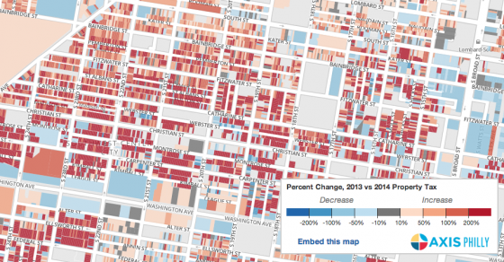 With the release of the 2014 assessed home values by the Office of Property Assessment, we now have an idea of what property taxes will look like next year across the city. And in many neighborhoods, it ain’t pretty. You can check on your neighborhood, using the Axis Philly AVI Map, and see how you and your neighbors will be crushed impacted.
