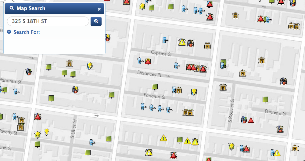 More fun is the new Map Application (Mapplication?), which maps lots of information you may want to know. Curious about whether the vacant lot next door has an appropriate vacancy permit? Want to check to make sure your future landlord has a rental license? Desperate to know whether the crew working at 6:30am on the house next door has their required permits? Wondering about a nearby zoning application but don’t feel like getting off the couch? These questions and more can be answered with L&I’s new “Mapplication.”