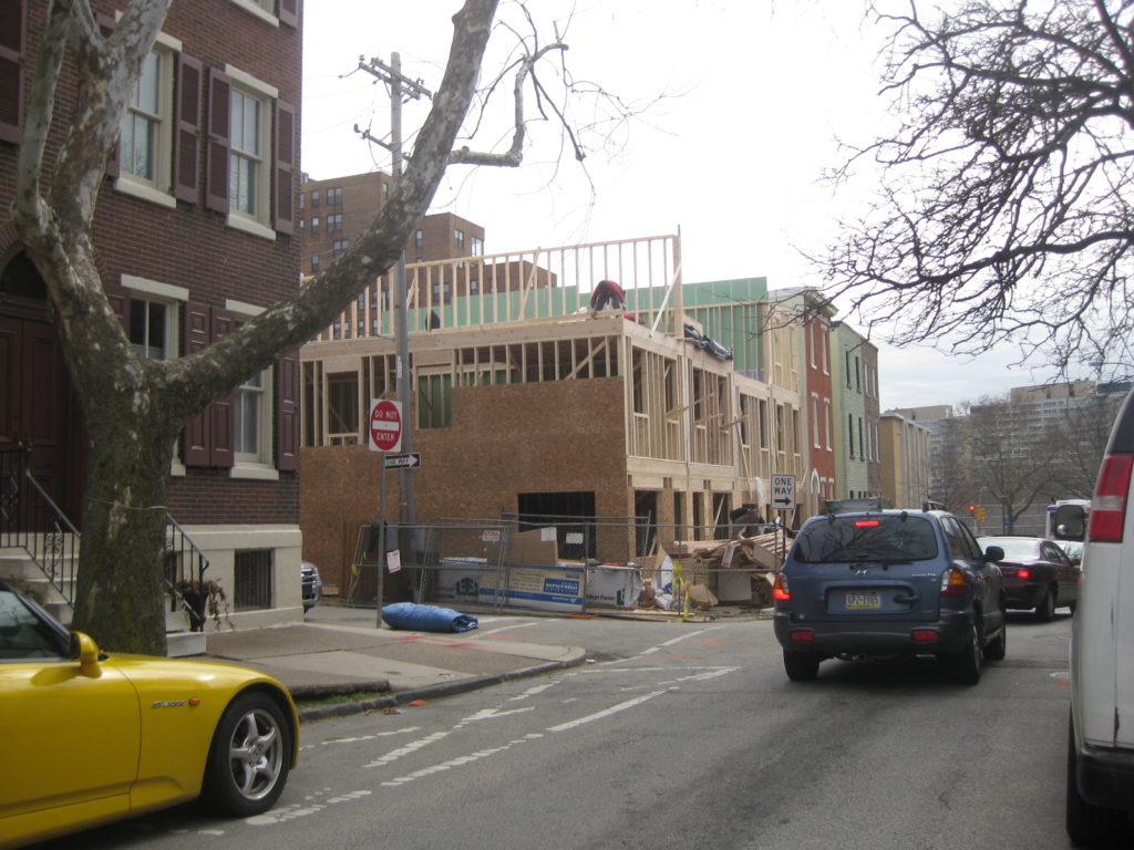 For years, an embarrassing jungle has been the status quo at 23rd & Brandywine, a corner that’s steps away from the Philadelphia Museum of Art. Over a year ago, we first told you about plans from Loonstyn Properties to build four homes at this site and rehab a dilapidated shell that was being devoured by some aggressive ivy. Over the summer, we updated you that Loonstyn was negotiating with the neighborhood association, and had cleared the land but still had not broken ground.