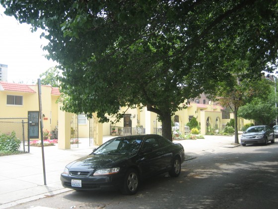 After a healthy Sunday brunch at Belgian Cafe, we took a stroll to work off some of the effects of the omelet and Blood Mary combo. We had made it about a block and stopped dead in our tracks when we noticed a row of eight houses that appeared to have been beamed from Arizona to the corner of 20th and Green Sts. Not to say that we’re experts in Southwestern or Spanish architectural styles, but even our keen yet tipsy eyes could tell that these houses did not belong among the generally enormous classic row homes on the block.