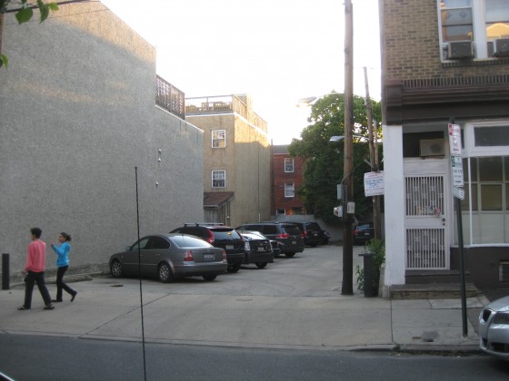 A reader gave us the heads up that at Tuesday’s Bella Vista Town Watch meeting, there would be a presentation for a ridiculous new building at 712-14 S. 8th St., currently a rental parking lot. According to the meeting announcement, developers are planning a seventy-foot-tall six-story building for this 3,500 sqft lot with ten apartments and two parking spots.