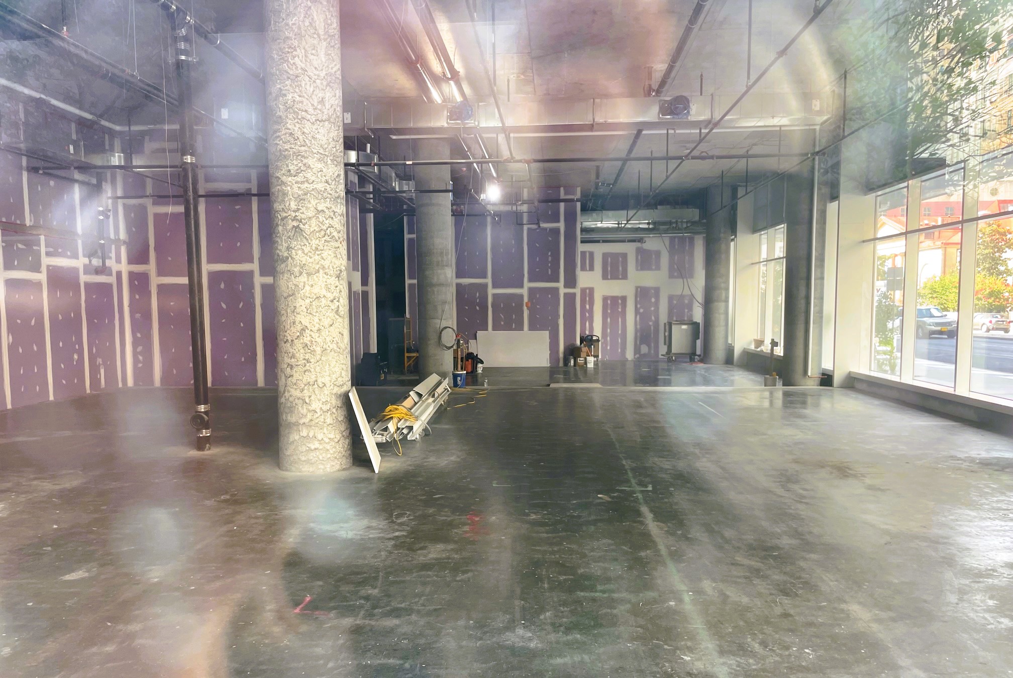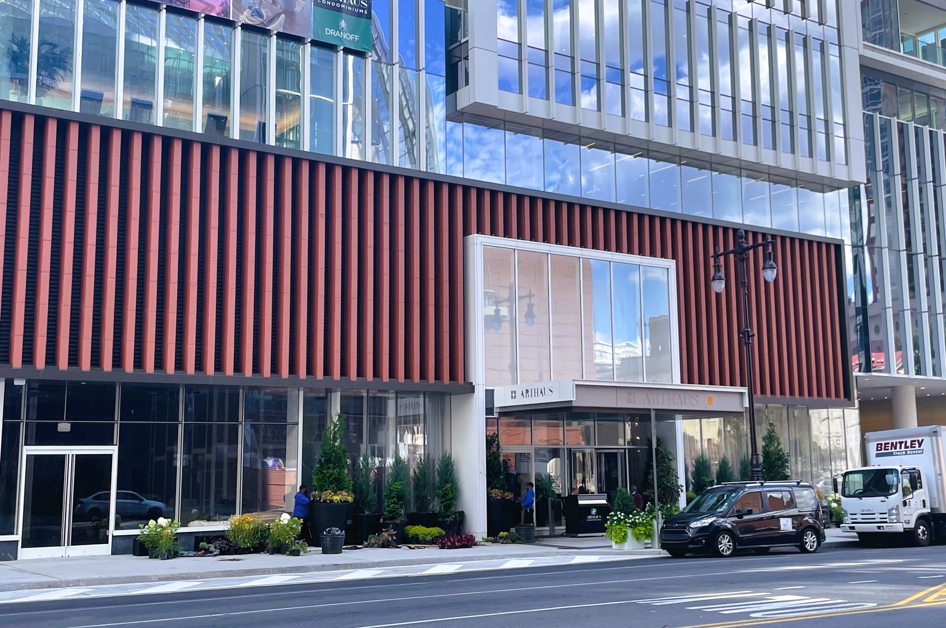 Every now and then, the timing of our site visits can be quite serendipitous, with our arrival coinciding with some sort of fun or cool event (Note: our definition of “fun” and “cool” might be biased towards this sort of thing). It had been a minute since we stopped in at the Arthaus, Dranoff Properties‘ new luxury condo tower at 301 S. Broad St. along the Avenue of the Arts. Rewind to almost a decade ago, when we first told you about plans for the corner of Broad & Spruce, and it’s pretty remarkable that things are only now close to wrapping up. After initially being proposed as an SLS hotel/condo tower hybrid, a shift was made to just condo units several years back, but the design from Kohn Pederson Fox (KPF) has remained remarkably consistent over time.