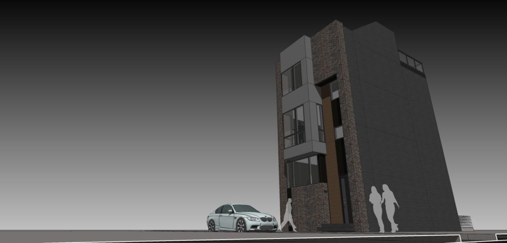 A few months back, Shimi Zaken from Atrium Design got approval from the ZBA to build a new home on this oddly shaped and lot that's in a slightly challenging location. The lot is quite wide, at 19 feet, but is very shallow, at only 40 feet deep. To build a home with a five foot rear yard required by code, you're already dealing with a shallower-than-desired home. In addition, the space immediately to the north is used for trash storage for the excellent Supper, and other nearby properties are built out very close to their property lines.