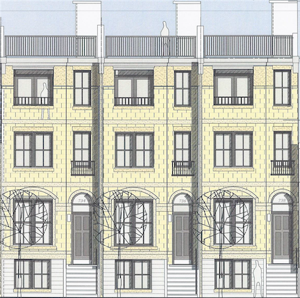 You can walk over to the site and stare at the signs, or you can just look below to get an idea of what the homes will look like. The project website only has an image of the southern homes, but a zoomed-in photo of the sign on the northern lot is still easier than going there yourself.