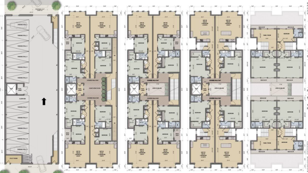 We popped into an open house a couple of weeks ago, and we’ve gotta say, it’s a unique property. The building contains twelve condo units, most of which have a deeded parking space on the first floor. A staircase or an elevator takes you up to the second floor, which contains an atrium that goes all the way to the roof, with entrances to the units on each floor and big skylights. The setup had a hotel-like quality to it, with most of the units having both doors and windows facing into the atrium. Then again, we’re kind of sweet on Embassy Suites, so it worked for us.
