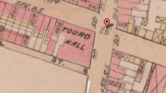 The park’s current state is the happy result of renovations completed in 2004. But this corner has seen quite a bit of change over the last century plus. According to the Jewish Encyclopedia of 1906, the 2nd Hebrew School in the city’s history stood at this location in a three story building known as Touro Hall. In the image taken from G.W. Bromley’s 1895 Philadelphia Atlas, we can see that the building was known by this name around the turn of the century.