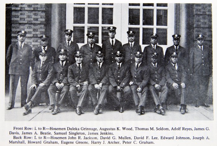 According to PhilaPlace, with the inception of segregation in the Philadelphia Fire Department in 1919, Engine 11 would become the first and only all black fire company in the city. PhilaPlace reports that prior to that point, the rare black fireman was largely relegated to horse stable maintenance and other non-firefighting activities. Thus, in spite of the negative connotation of segregation, this transition would provide black firefighters with the opportunity to actively protect their own neighborhoods. The portrait here below, taken from PhilaPlace and credited to the Fireman’s Hall Museum, shows the company during this era of segregation.