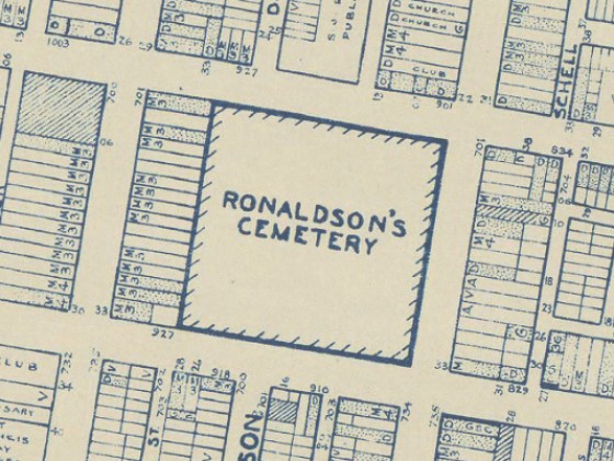 However, as these images taken from the Works Progress Administration’s 1942 and 1962 Land Use Maps show, this grass lot was once hallowed ground. According to an article by Joseph T. Reichwein, originally culled from the Philadelphia Bulletin (probably around 1950), Ronaldson Cemetery was established in the park’s current location back in 1827.