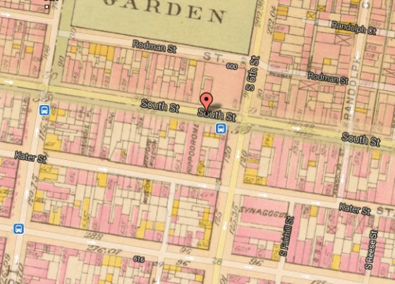 Cinema Treasures tells us that Ripley Music Hall opened at 606 South St. in 1909 with a seating capacity of 500. However, the image taken from G.W. Bromley’s Philadelphia Atlas tells us that by 1910, the theatre was known by the much more hilarious handle, the Hippodrome.