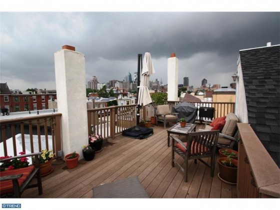 This 2 bedroom, 2 bathroom house offers about 1250 sqft. of living space right in the middle of Bella Vista. First floor has a living room, eat-in kitchen, and access to the rear yard. On the second floor, the master bedroom has a unique Rais wood-burning fireplace along with a walk-in closet and a bay window with a window seat. The third floor has an additional bedroom and bathroom, along with access to the souped-up deck with electricity, water lines, and skyline views. Convenient to South St. and the Italian Market, and surrounding blocks have a great neighborhood feel. The property is listed for $399K and comes courtesy of Prudential Fox & Roach.