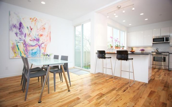 Created by a professional designer and his artist wife, 819 S. Warnock Street is an open and bright loft-like three-bedroom and two-and-a-half bathroom new construction with light oak floors on all floors. Three decks, two-car parking, open steel railings, white lacquered kitchen cabinets, a floating bathtub and large angled windows all come with the $799K package, but we love the Icelandic look; it reminds us of Norway architect Gudmundur Jonsson. That’s a good thing. —Caitlin Connors