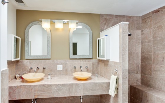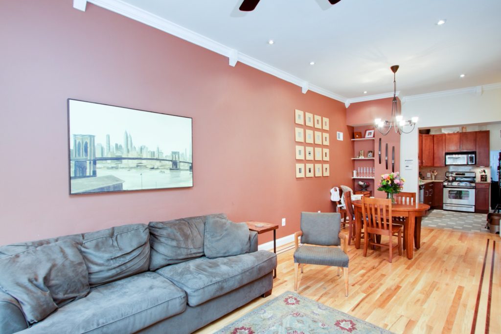 Renovated in 2006, the Queen Village three-bedroom at 917 S. Sixth Street had two decks, a yard, high ceilings, crown molding work, marble-tiled bathrooms, gas fireplace and finished basement with bar all for $500K. (See? we can still find homes that are cool and not in the seven digits!) Great idea with the built-in shelving above the closets in the bedroom (smart storage idea), but we find the vent over the door molding a bit messy. We are huge proponents of open showers, but usually never see them done in the city, unless the price tag is hefty (hefty hefty), so that only peaks our interest (the shower-head contraption and “decorative” glass blocks* in the second bathroom, however, deflates that interest immediately). The narrow living rooms common for Philadelphia townhomes always leave something to be desired, but for five Franklins and so much outdoor space, this is a great listing. —Caitlin Connors