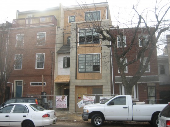 The intersection of 6th St., Christian St., and Passyunk Ave. is buzzing lately, with the year-old Shot Tower Coffee on the corner, the ever-more-likely-to-be-permanent Triangle Park, and a construction project at 606 Christian St., the scale of which we didn’t really appreciate until yesterday. We knew that the home that had once stood there had been torn down and that a new home was replacing it, but we confess we were surprised by the size and the look of the new building when we stopped by.