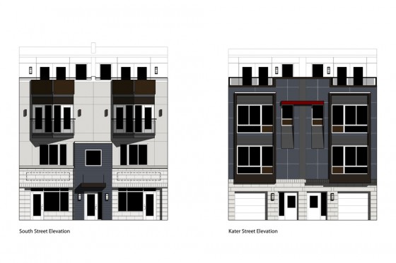 The developers are seeking a number of zoning variances. They wish to turn the single lot into three separate lots, with 2 four-story houses with garages on Kater St. and a new four-story building fronting South St. with commercial space on the first floor and two apartments above. This project is still in the planning stages, so no potential commercial tenants were discussed at the meeting. With the some vacancy on this part of South St., we imagine the developers will have their work cut out for them finding a good commercial tenant, but we couldn’t imagine a new building on this block of South St. without a commercial space. Also, we’re not sure that the BVTW or South St./Headhouse would allow it.