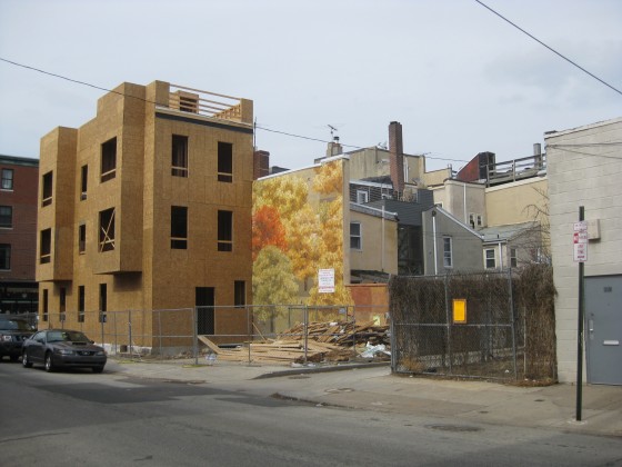 We’ve covered the new construction that’s covering David Guinn’s mural “Autumn” at 9th and Bainbridge Sts. over the past few months, most recently peeking at the mural through the now framed structure just a couple of weeks ago. The other day, we noticed a new zoning application notice on the vacant lot immediately to the east of the construction site.