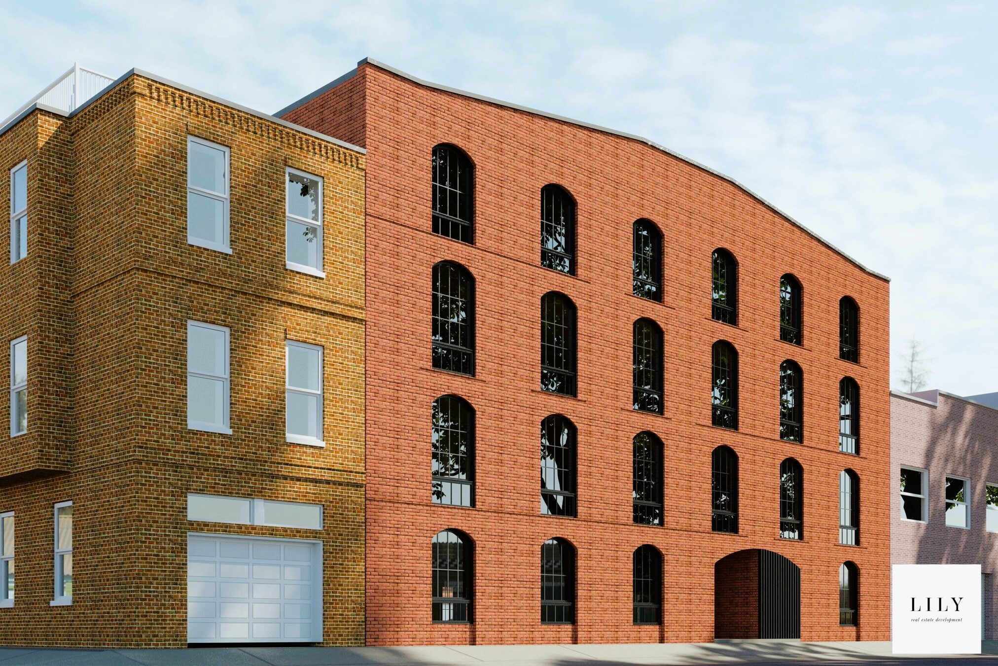 The exteriors may be safe, but are nowhere close to sorry, with enough window depth to create interest on the facade. Additionally, subtle horizontal brick elements along the windowsills provide just enough contemporary flair to keep the design from feeling stuffy. The arched, wide entrance recedes cozily with its black paint along the ground floor, with parking for five bicycles and elevator access to the basement level and the upper four floors. Some classy signage out front finishes off the look, though we hope to see some street trees (and maybe a planter box or two) join the fold in the currently barren tree pits along the sidewalk. A dark cornice wouldn’t hurt, either.