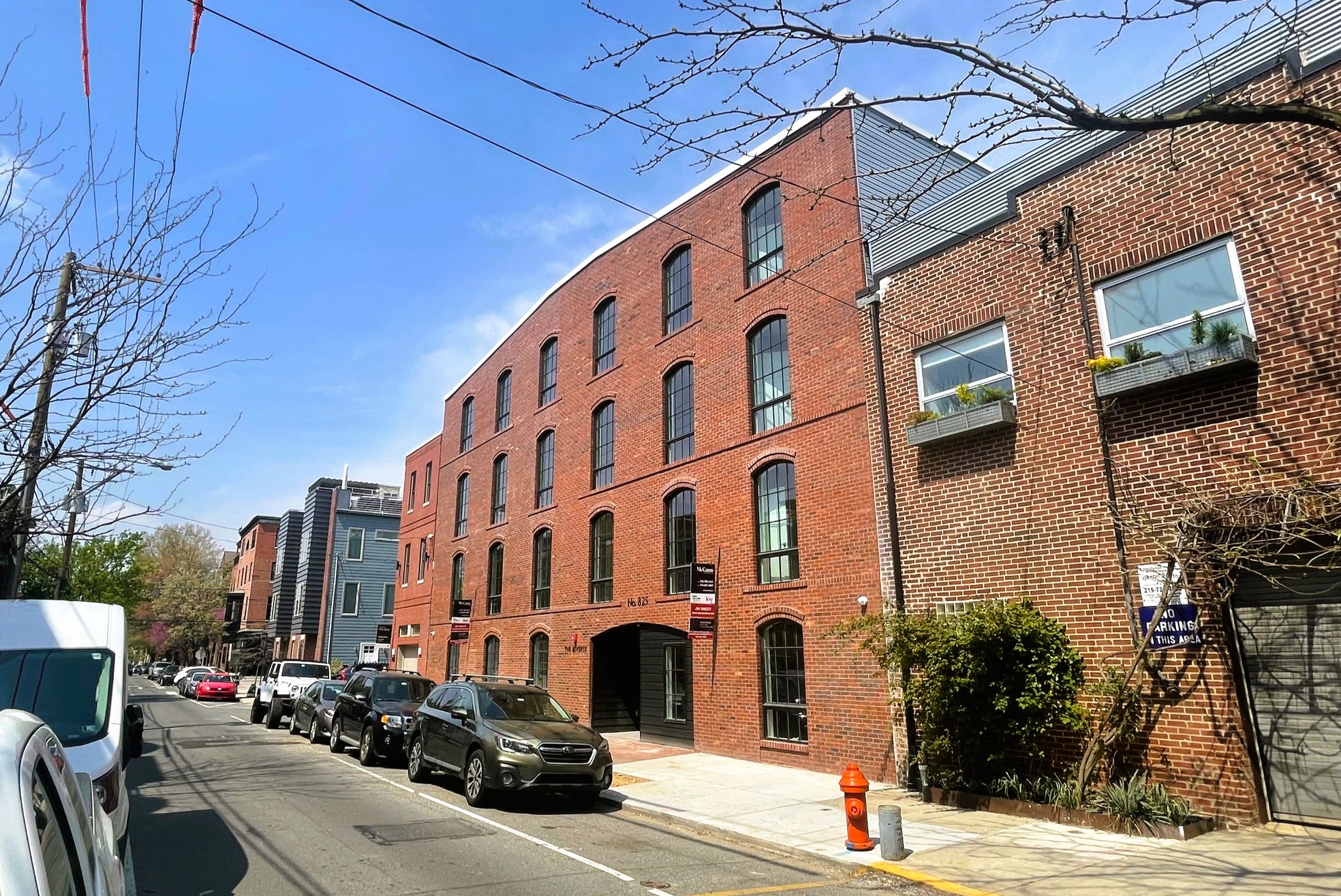 Previously home to the studio of muralist Meg Saligman, the property changed hands a couple years back, with Lily Development planning to demo the site. 15 condo units designed by Ambit Architecture were slated to rise, with facade work charging ahead when we last visited. As you can see today, things look much as they were promised in the renderings of this traditional throw-back design, with construction looking basically finished along the front facade.