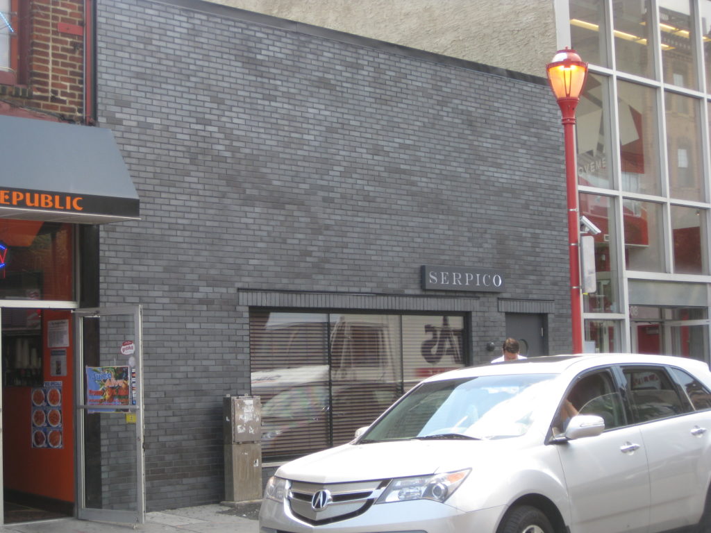 What a difference just a couple of years can make. As we told you back in April, Sneaker Villa has taken over the very large former home of Tower Records. European Republic opened in another one of these spaces about a year and a half ago. And according to Foobooz, exciting new restaurant Serpico, which we first told you about last fall, will start regular dinner service tomorrow night. To go with a completely reworked interior, owners Stephen Starr and Peter Serpico put a sweet new facade on the building as well.