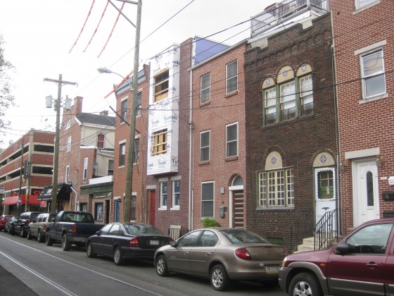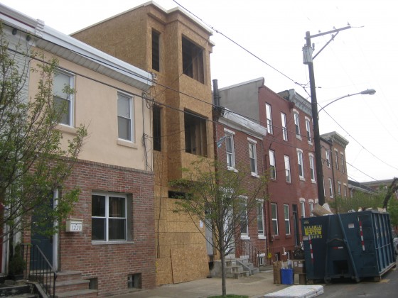 A couple of blocks to the west, a new three-story home has been framed out at 1222 Catharine St., across the street from the nearly completed Hawthorne Park. The home that previously stood here was a two-story structure that was purchased last month for $170K. Apparently, it couldn’t be saved. Not that it looked so nice in the first place.