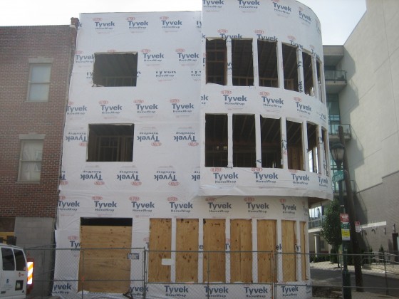 The developers, Michael and Mario Carosella, own C&R Building Supply, and have gotten some (virtual) ink on our site for their upcoming project at 18th and Washington and their rapidly progressing construction at 20th and Fitzwater Sts. When we spoke with Michael Carosella, we found out that the new building on South St. will house two high-end bi-level rental apartments and a large first floor commercial space. The commercial space isn’t leased yet, but they intend to market the space once construction moves along a little further.