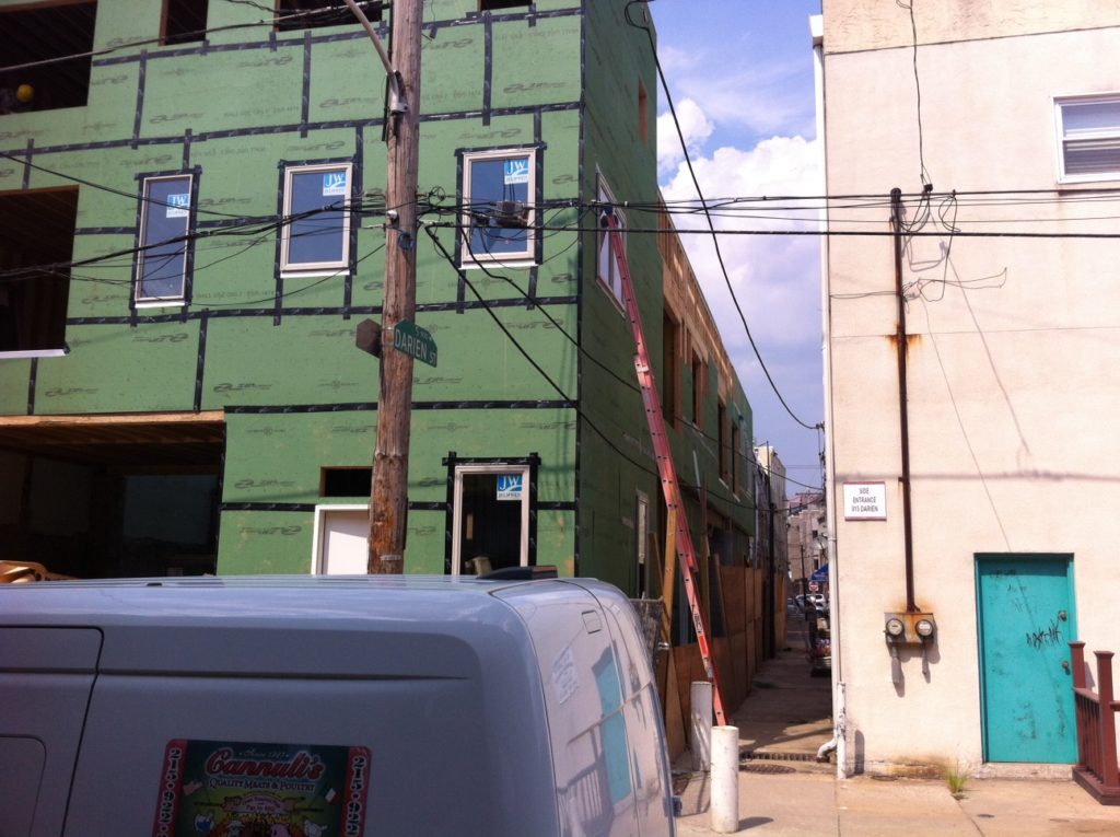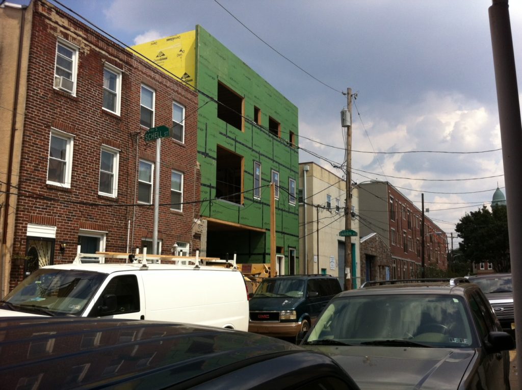 This development makes all kinds of sense. Easy access to the Italian Market, with enough produce, taquerias and cheese shops to shake a stick at. Plus, there are a dozen new construction houses on this block alone. The neighborhood is growing, so a three-unit building with three parking spaces seems to be totally appropriate (though maybe a little tall?). It just bums us out to see such a unique facade come down, taking one more unique architectural element away from this neighborhood.