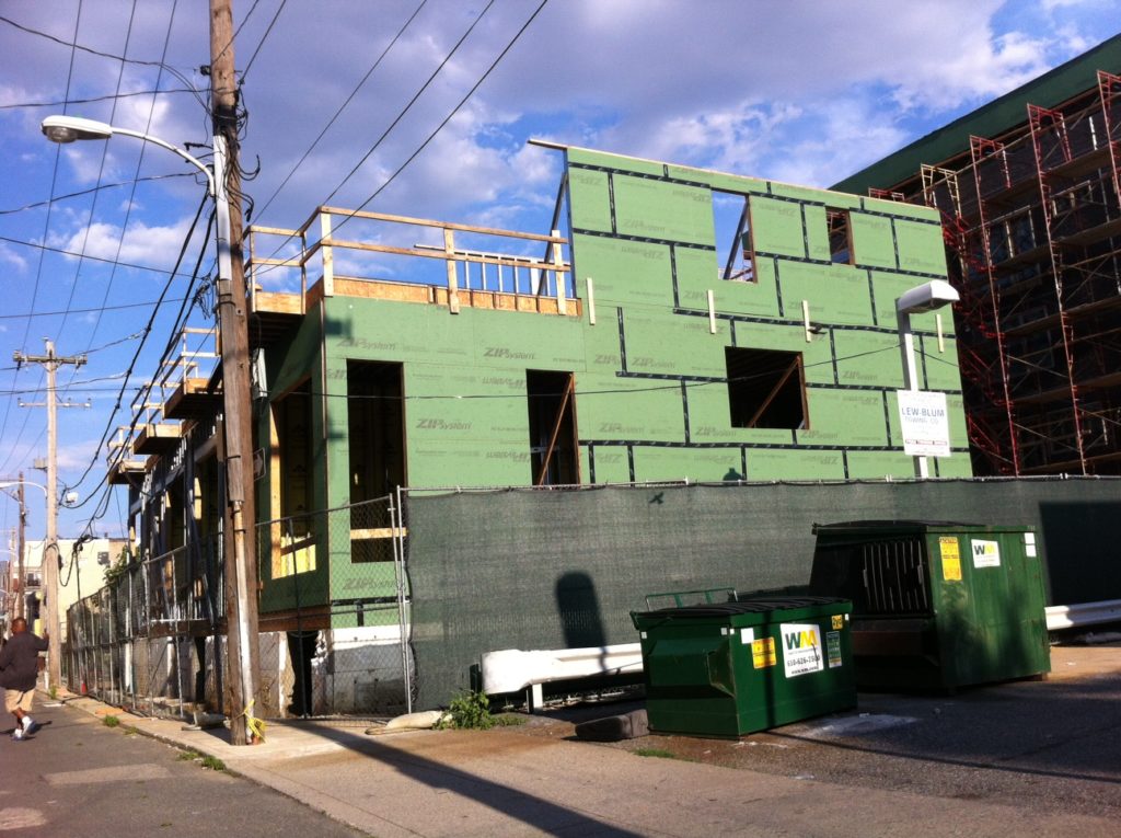 We’re still a little bummed that this development consists of single-family homes and not a larger mixed-use building, but we are very pleased to see that the homes are indeed going up as planned. Hopefully, buyers will continue to line up for these properties, and as they move further and further away from Broad Street and the gas station they will become easier and easier to sell. We’ll check back here in a few more months, when the first eight homes will hopefully be finished and the next round of new ones will ideally be underway.