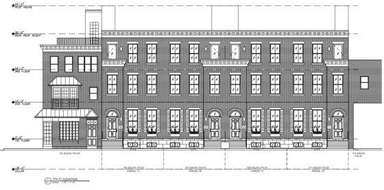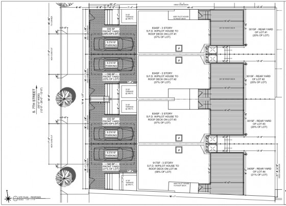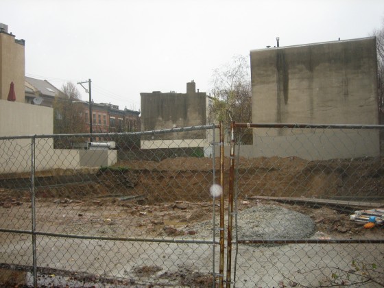 A couple of months ago, we told you about the four homes planned for the large, vacant lot just a little south of 7th and Bainbridge Sts., but we didn’t have any visuals to provide at the time. The developer, as it turns out, is not Richard Santore as we previously reported, but BILD Properties, a company we believe to be owned by a pair of realtors in the neighborhood. Thanks to a commenter for the heads up about that. Public record shows that BILD purchased the lots for $925K in September. Construction activity has been underway over the past few weeks, and yesterday we spotted footers prepared for four foundations.